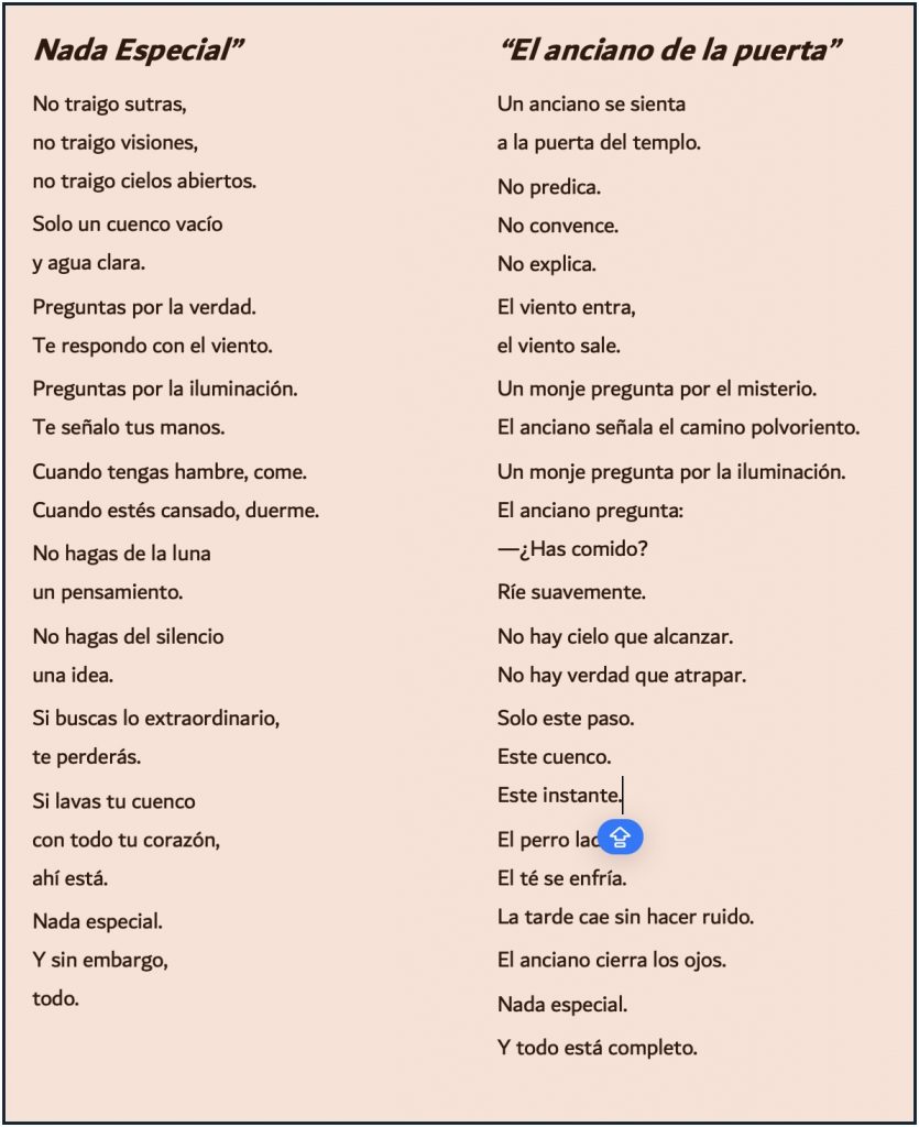Os recomiendo que naveguéis entre los diferentes artículos, audios y vídeos de esta web. Cada mes publicamos en portada un tema diferente. Una opción es leer/visualizar los temas relacionados anunciados en la portada. Os pido que insistáis en la práctica y el silenciamiento. La mejor manera de seguir las enseñanzas es practicar en grupo. Buscad un grupo de Zen e incorporaros a la práctica. Aprended de vuestra propia experiencia. Abrazo. Pedro